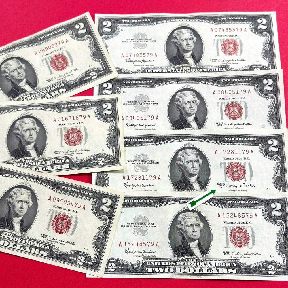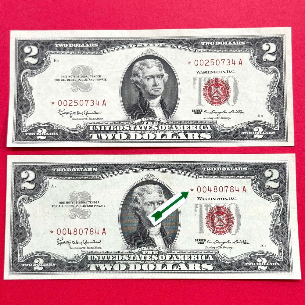 ♦ Hình ảnh chi tiết về những tờ 2USD 1963 và 2 USD 1953 seri đẹp: