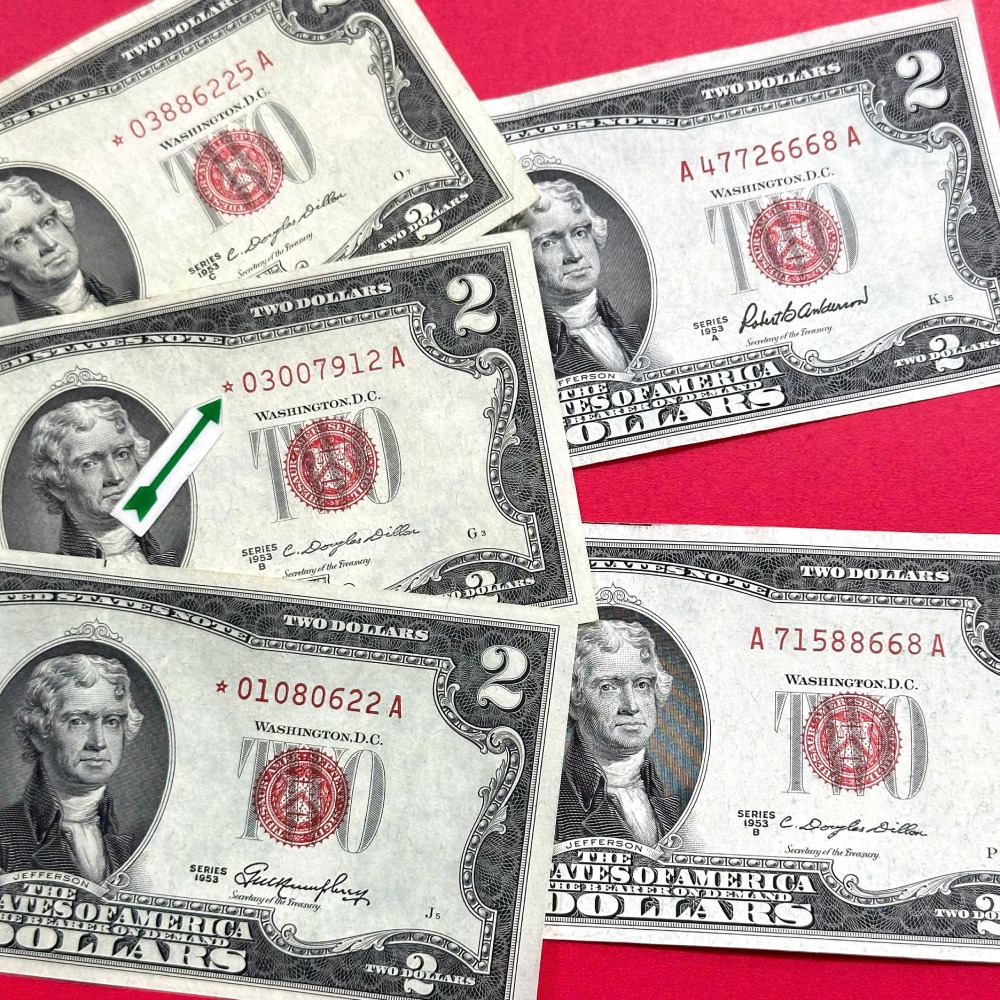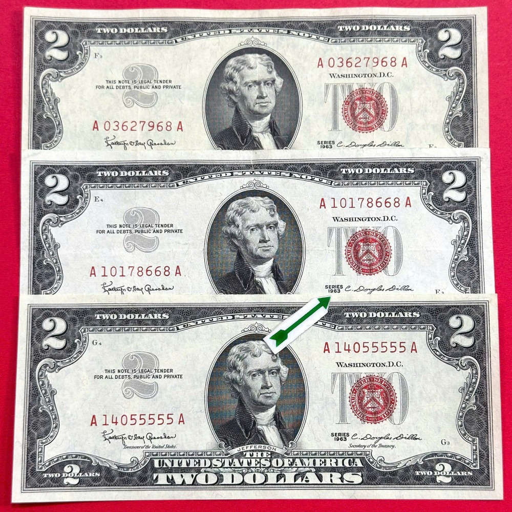 2 Đô 1963 số đẹp và 2 usd 1953 seri đẹp