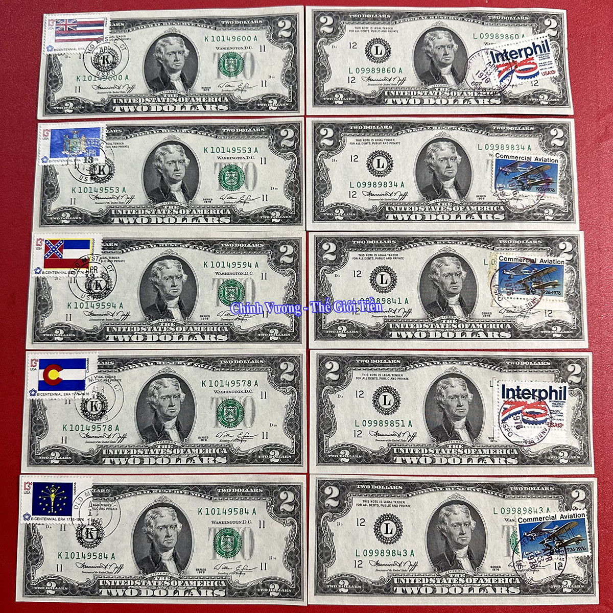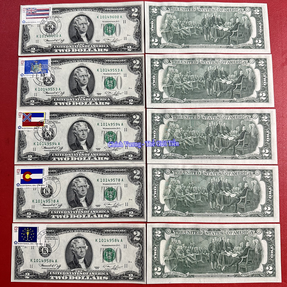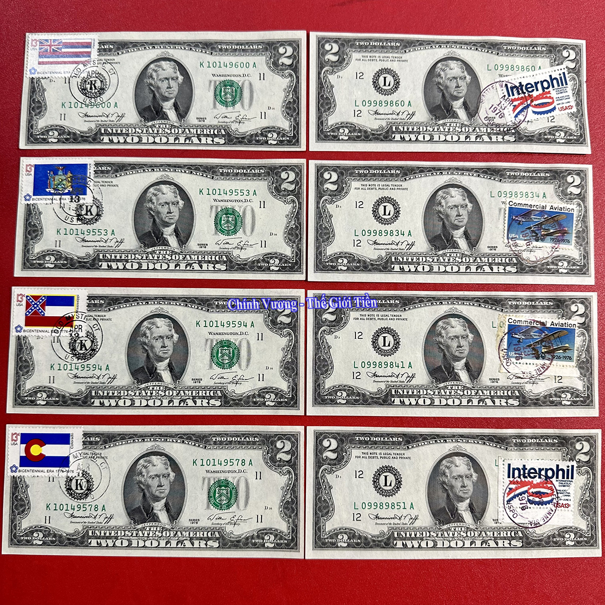 (2 USD 1976 dán tem, hàng ít gặp. Chất lượng mới 99 – 100%)