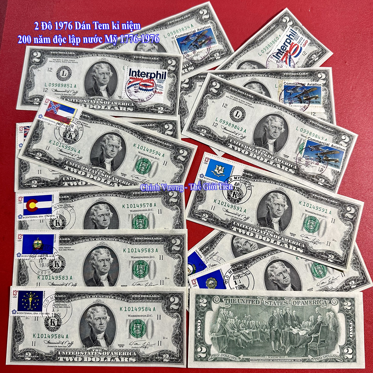 – Còn vì sao lại có những tờ 2 Đô 1976 dán tem là vì đây là những tờ 2 USD năm 1976 được sản xuất đầu tiên được chính phủ Mỹ cho dán tem và đóng dấu nhằm kỉ niệm 200 năm ngày độc lập nước Mỹ (1776-1976). Chính vì vậy số lượng những tờ 2$ 1976 dán tem này có số lượng rất ít và rất hiếm nên giá trị sưu tập rất cao. Và chỉ có năm 1976 mới có dán tem còn ngoài ra các tờ tiền khác như: 2 USD 1963, 2 USD 1953 hay 2 USD 1928 đều không có dán tem.