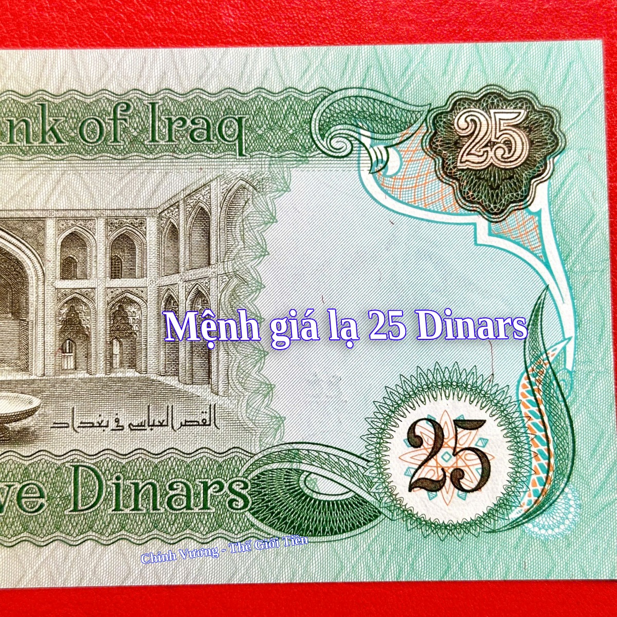 – Đây là tờ TIỀN THẬT của nước Irac phát hành năm 1982. Hiện nay đã đổi tiền khác (giống như thế hệ tiền Cotton của Việt Nam chúng ta).